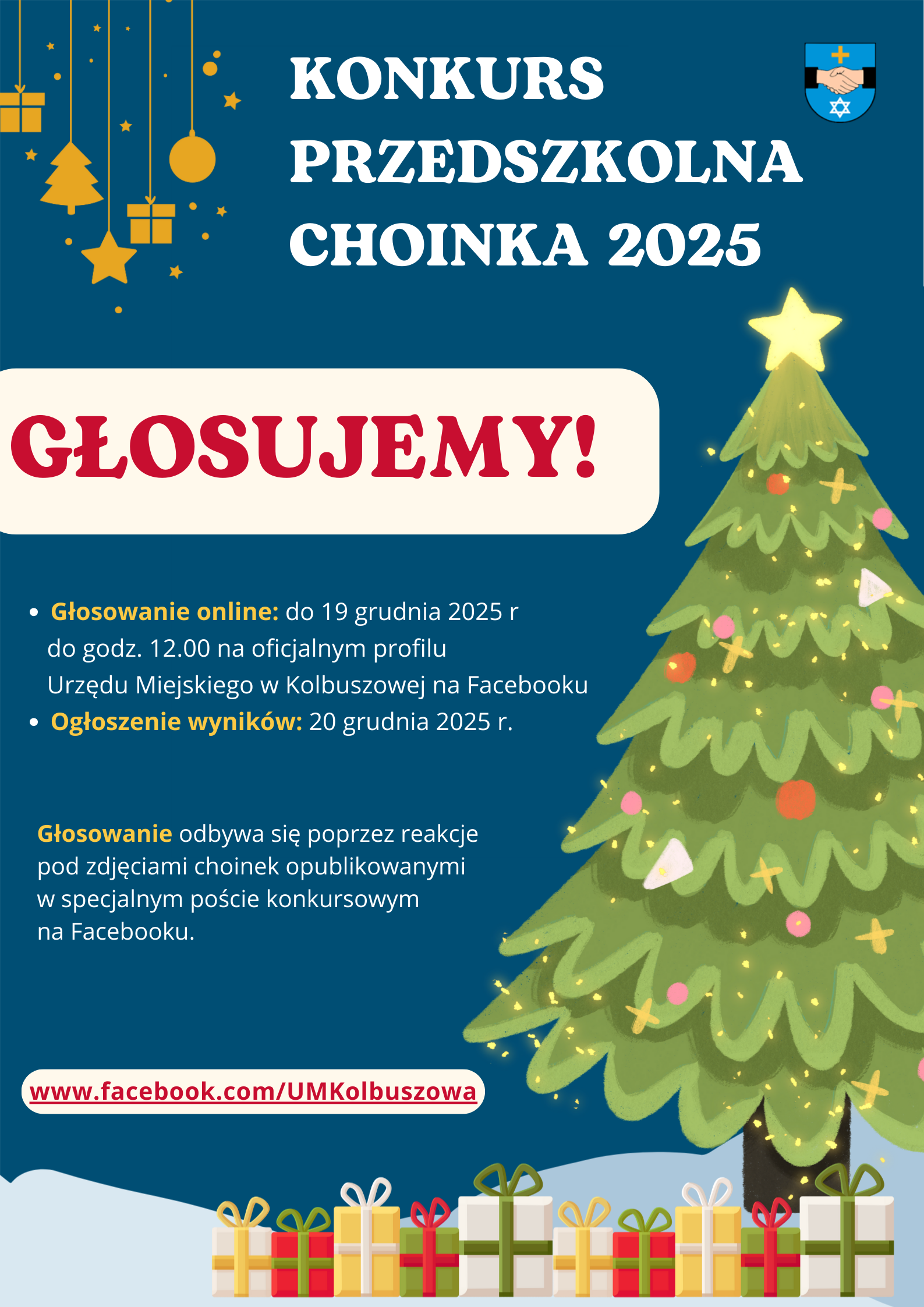 Zapraszamy do udziału w głosowaniu w ramach konkursu „Przedszkolna Choinka 2025”, w którym biorą udział przedszkola oraz oddziały przedszkolne z terenu Gminy Kolbuszowa.