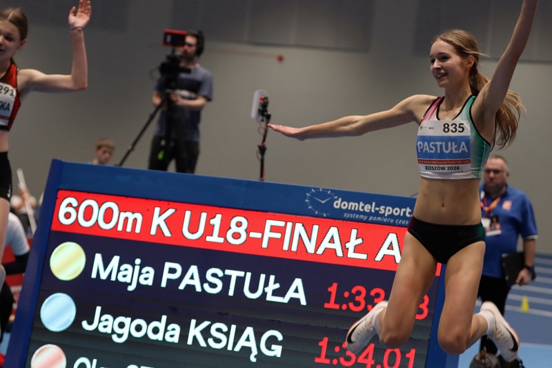 Maja Pastuła zdobyła złoty medal podczas Halowych Mistrzostw Polski U18 i U20, które odbyły się w dniach 14-15 lutego 2026 r., uzyskując tytuł Halowej Mistrzyni Polski U18 w biegu na 600 metrów. Zawodniczka klubu UKS Tiki-Taka Kolbuszowa i uczennica Liceum Ogólnokształcącego w Kolbuszowej zwyciężyła w finale z czasem 1:33,88, wyprzedzając o 0,13 sekundy Jagodę Ksiąg z MLKS Agros Żary. Brązowy medal wywalczyła Olga Szczepańska z KS Zamek Kurzętnik.